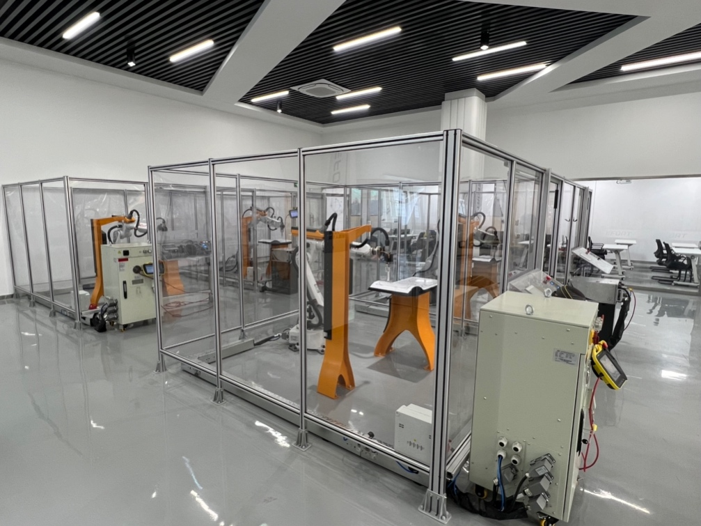 课程培训期间穿插高密度实际操作,加深学员对培训内容的掌握,其中,EFORT机器人学院拥有专业机器人实训工站8个,培训标准实训单元6个,外部轴实训单元1个,综合应用实训单元1个。另有专业机械拆装实训场地,在保障学员实训安全的基础上,为学员给予专业的培训设施,满足机器人培训课程体系相关实训需求。
